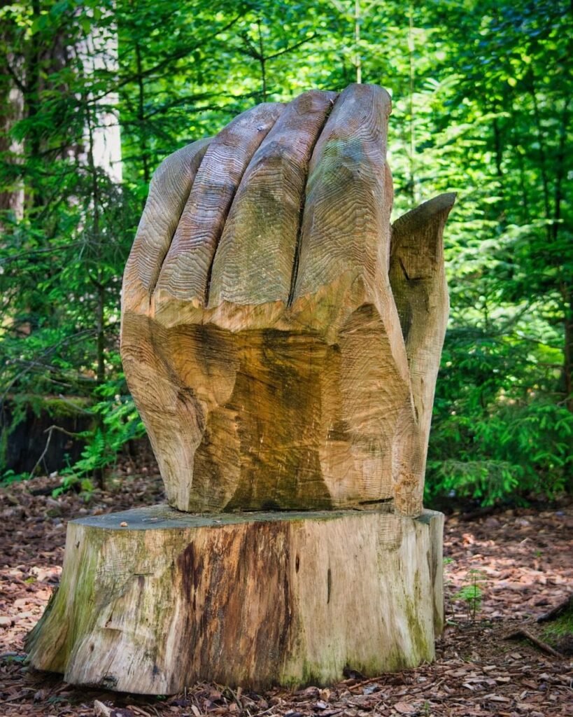 A colossal hand emerging from the stump, fingers reaching toward the canopy in eternal communion. Minted on Mintora.art — Acquired 2025.